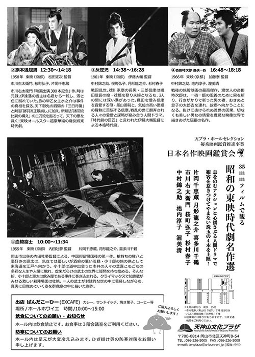 【イベント情報】天神山文化プラザ/35mmフィルムで観る 昭和の東映時代劇名作選