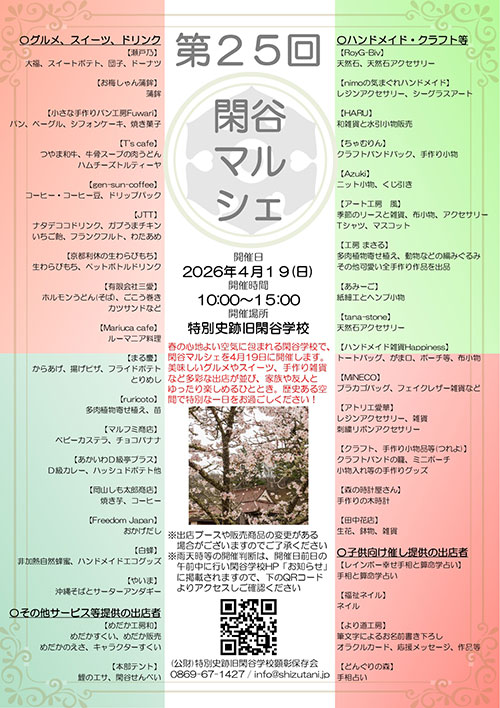 ※当日の開催の可否は下記リンク先の閑谷ホームページの「お知らせ」に、前日に告知いたします。