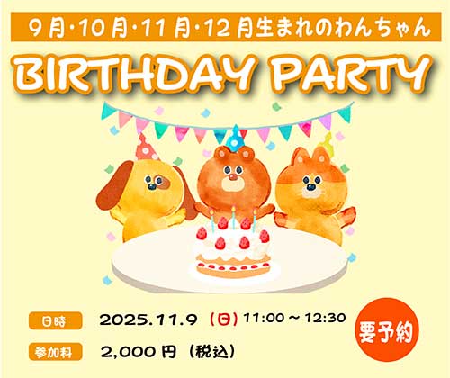 9月、10月、11月、12月生まれのわんちゃんのバースデーパーティー